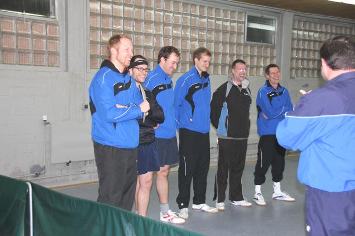 Und auch Chris „Buch“ machte mit klarem Sieg (leichte Schwäche im 4. Satz) seinen Einzelsieg perfekt. Schließlich gelang es „Vadder“ Michael Schwarzer durch kluges taktisches Umstellen seines Spiels gegen den Rückhand-König Tim Birkenhauer nach einigem Hin und Her in den ersten drei Sätzen, den 4. und 5. Satz deutlich für sich zu entscheiden. Da zahlt sich Erfahrung immer aus!