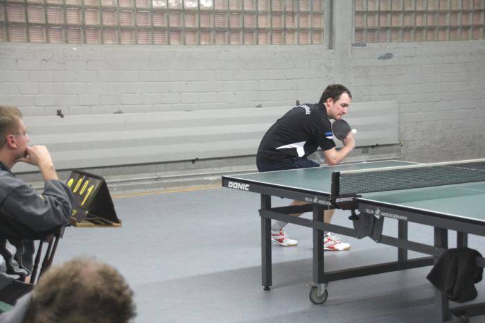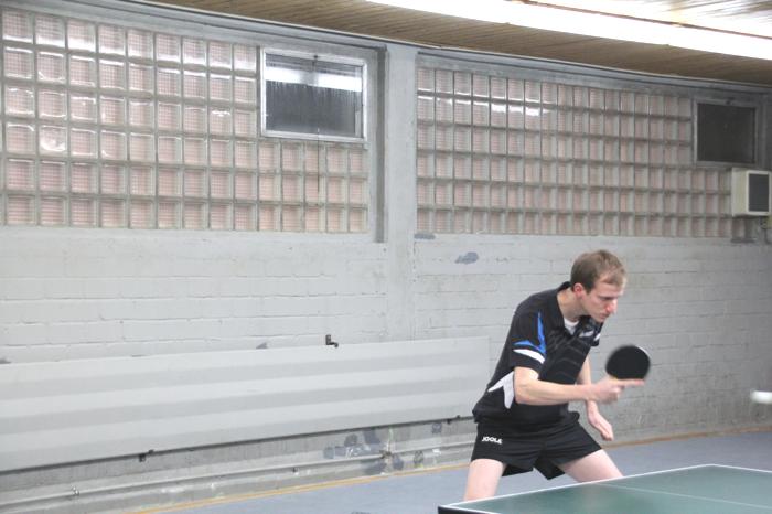 Im ersten Einzel des Abends hatte es Marcel mit Fengel, den Spitzenspieler der Heimmannschaft, zu tun. Leider konnte er nie sein Spiel durchsetzen und verlor mit 3:0.