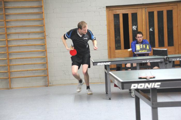 Parallel hierzu spielten Gottschling/Römhild gegen das Spitzendoppel der 98er Schneider/Bunzel. Besonders hervorzuheben hierbei waren die Flatterbälle mit den Noppen von Gottschling, der den Gegner das ein oder andere Mal zur Verzweiflung brachte. Daher wurde die Partie relativ klar mit 3:1 gewonnen. Es scheint, dass hier eine ernsthafte Konkurrenz für unser Spitzendoppel Müller/Busch heranwächst. Warten wir’s mal ab.