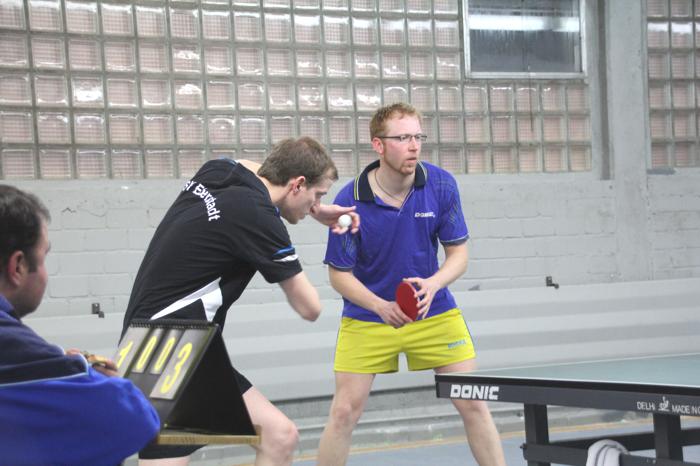 Den zweiten Durchgang begann das vordere Paarkreuz, Mark gegen Severin, auf das viele sehr gespannt waren und Carsten gegen den jungen Jansohn. Trotz wirklich überzeugender, kämpferischen Leistungen, mussten sich die beiden Ewwerschter ihren Gegnern mit 0:3 bzw. 1:3 Sätzen geschlagen geben. Nur noch 6:5 für Ewwerscht.